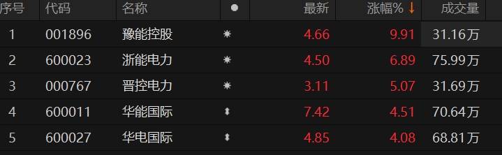 原标题:电力板块午后拉升 豫能控股涨停