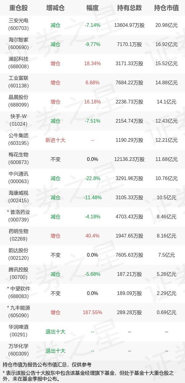 谢治宇旗下基金合并股票持仓全景请见下表(数据截止至2023-9-30日):