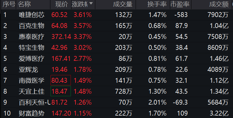 科创100ETF(588190)紧密跟踪上证科创板100指数,截至2023年10月26日13:20,指数成份股中,唯捷创芯上涨3.61%,百克生物上涨3.57%,惠泰医疗上涨3.37%,特宝生物、爱博医疗等个股跟涨。