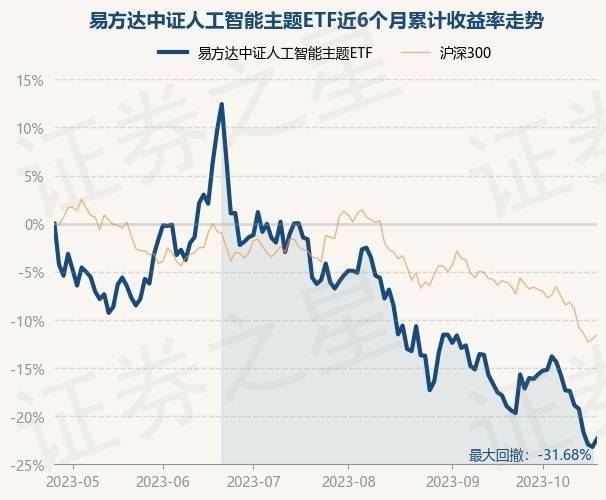 证券之星消息,10月25日,易方达中证人工智能主题ETF最新单位净值为0.7141元,累计净值为0.7141元,较前一交易日上涨1.09%。历史数据显示该基金近1个月下跌6.31%,近3个月下跌19.01%,近6个月下跌22.3%,近1年上涨12.14%。该基金近6个月的累计收益率走势如下图: