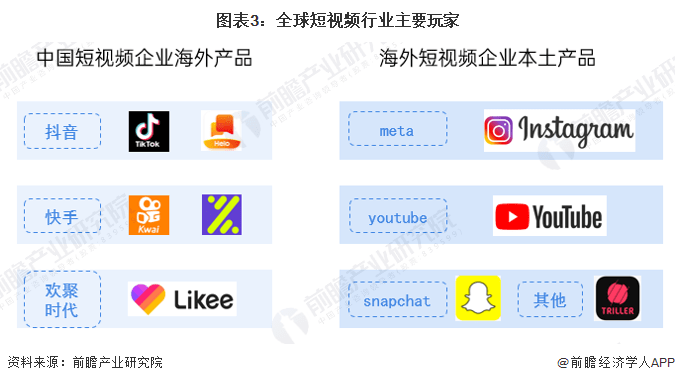 目前,全球短视频玩家除了Tik Tok、Kwai外,还有Meta(Instagram和Lasso)、YouTube、Snapchat和Thriller等。