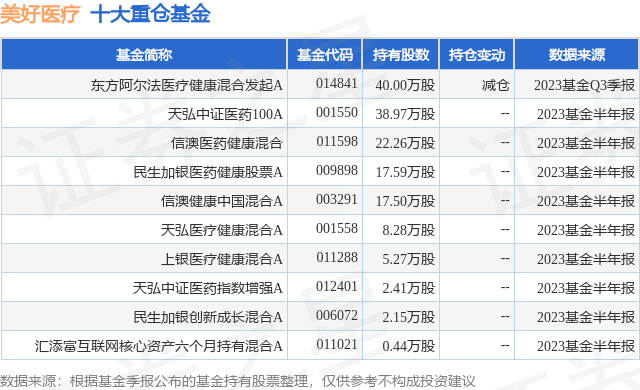 重仓美好医疗的前十大公募基金请见下表: