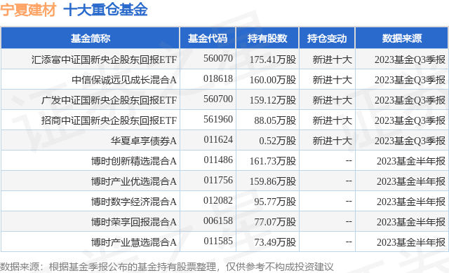根据2023基金Q3季报公募基金重仓股数据,重仓该股的公募基金共5家,其中持有数量最多的公募基金为汇添富中证国新央企股东回报ETF。汇添富中证国新央企股东回报ETF目前规模为9.99亿元,最新净值0.9222(10月24日),较上一交易日上涨0.86%。该公募基金现任基金经理为乐无穹 晏阳。乐无穹在任的基金产品包括:添富中证长三角ETF,管理时间为2019年7月26日至今,期间收益率为-10.62%;添富中证800ETF,管理时间为2019年10月8日至今,期间收益率为-1.22%;汇添富中证沪港深互联网ETF,管理时间为2021年7月8日至今,期间收益率为-39.9%;汇添富中证芯片产业ETF,管理时间为2021年7月27日至今,期间收益率为-43.49%。晏阳在任的基金产品包括:汇添富中证上海环交所碳中和ETF,管理时间为2022年7月13日至今,期间收益率为-32.35%;汇添富中证100ETF,管理时间为2022年10月20日至今,期间收益率为-4.19%;汇添富北证50成份指数A,管理时间为2022年12月27日至今,期间收益率为-26.86%;汇添富中证细分有色金属产业主题ETF,管理时间为2023年1月16日至今,期间收益率为-21.61%。