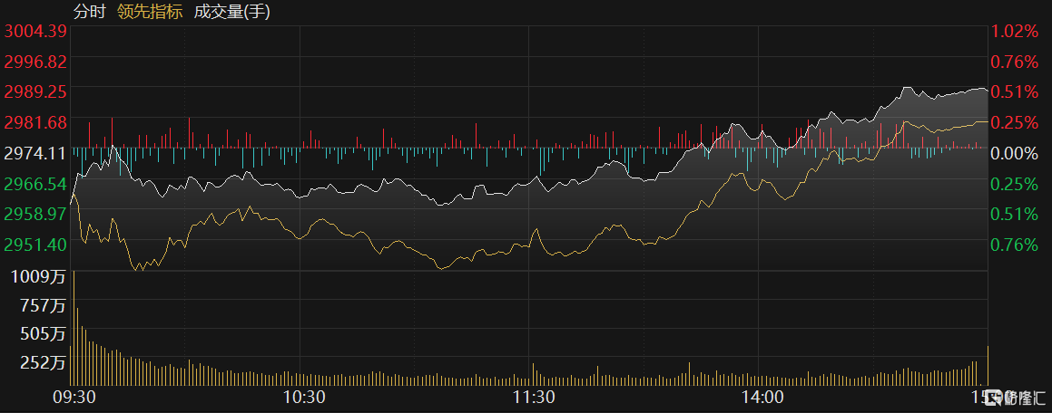 今日A股大盘全天探底回升,三大指数集体收涨,截至收盘,沪指涨0.49%报2988点,深证成指涨0.4%,创业板指涨0.65%。两市超2800只个股上涨。