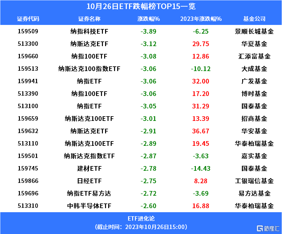 隔夜美股科技股重挫,纳指科技ETF、纳斯达克ETF分别跌3.89%、3.12%。建材板块回调,建材ETF跌2.78%。日股今日下挫,日经ETF跌2.75%。