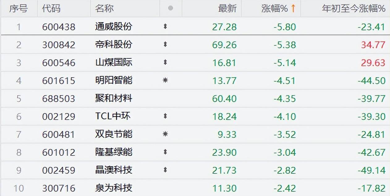 昨晚通威股份、TCL中环公布的三季报不及预期,另外根据财联社报道,近日,光伏产业内有传言称,印度所得税部门正在对中国主流40家光伏企业进行调查,调查理由为涉嫌逃税,调查范围涵盖公司及其印度的经销商。受此影响,今天光伏板块暴跌,领跌全市场。