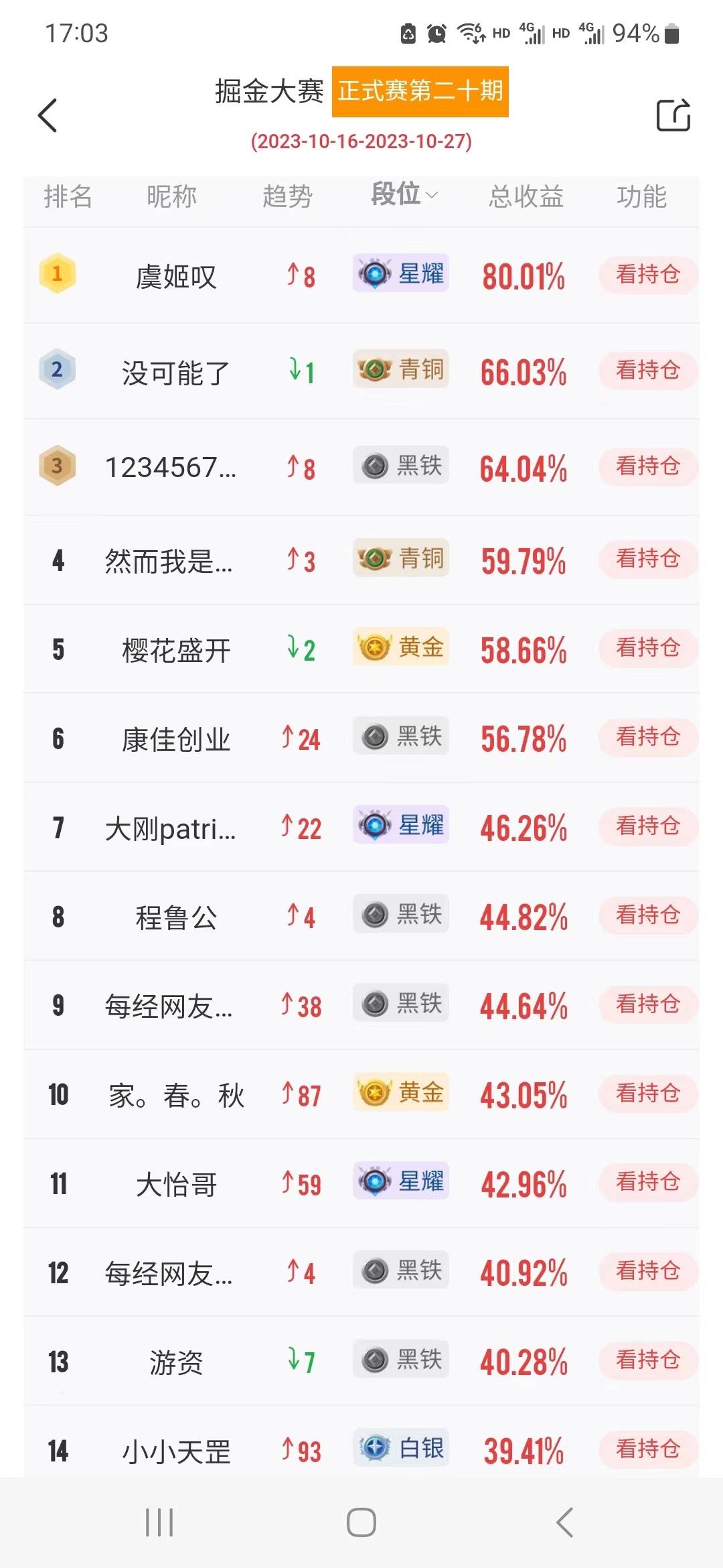 每日经济新闻APP推出半年多的掘金大赛受到很多粉丝的欢迎,诞生的高手越来越多,为便于大家向高胜率和稳健盈利的高手们学习,我们通过大模型筛选出一批高手,在每周日晚到每周四晚的掘金股吧中公布这些优秀选手的持仓动向。