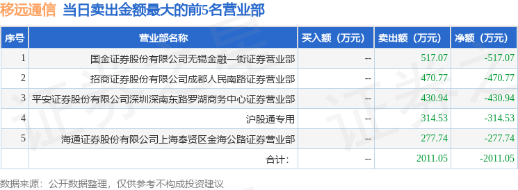沪深交易所2023年10月26日公布的交易公开信息显示,移远通信(603236)因有价格涨跌幅限制的日收盘价格涨幅偏离值达到7%的前五只证券登上龙虎榜。此次是近5个交易日内第1次上榜。