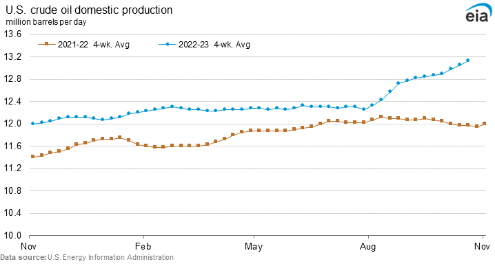 美国能源情报署(EIA)数据显示,美国最近四周的平均石油产量已攀升至1320万桶/日,为1983年以来的最高水平。