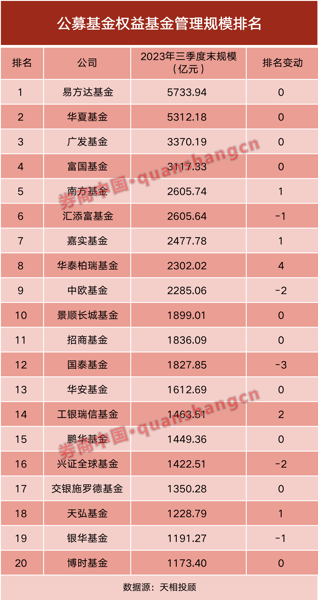 基金公司2023年三季度规模排名新鲜出炉!