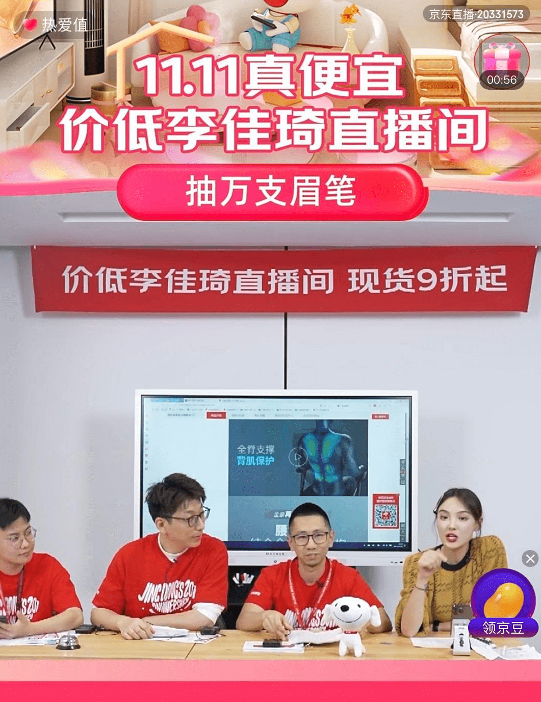 红星新闻报道,在京东APP首页底栏,有蓝色字条称“京东采销喊话,价低直播间;11.11真便宜,抽万只眉笔”等字样。