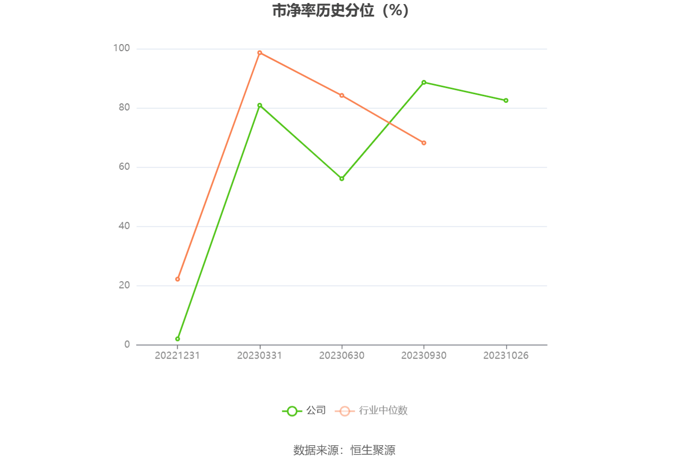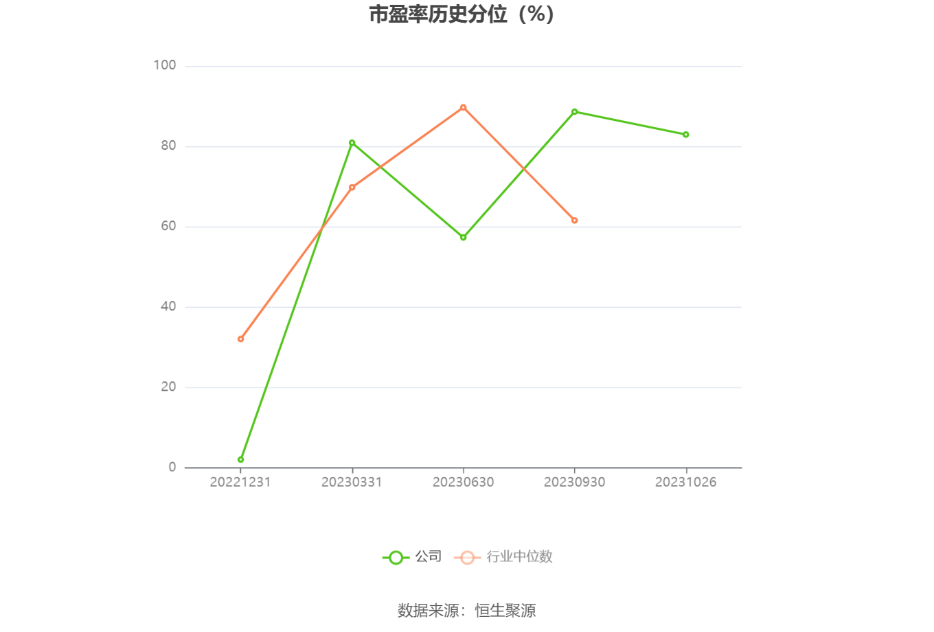市盈率为负时,不显示当期分位数,会导致折线图中断。