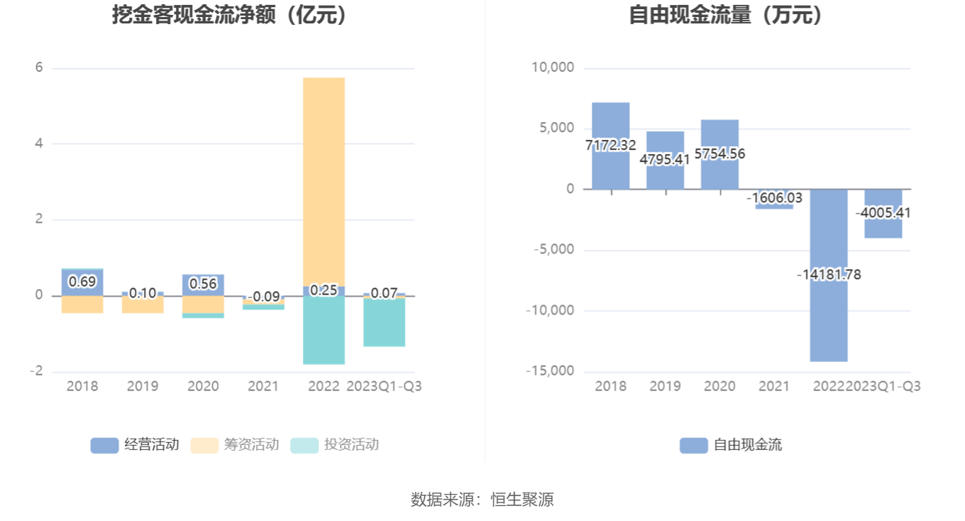 进一步统计发现,2023年前三季度公司自由现金流为-4005.41万元,上年同期为-2270.24万元。