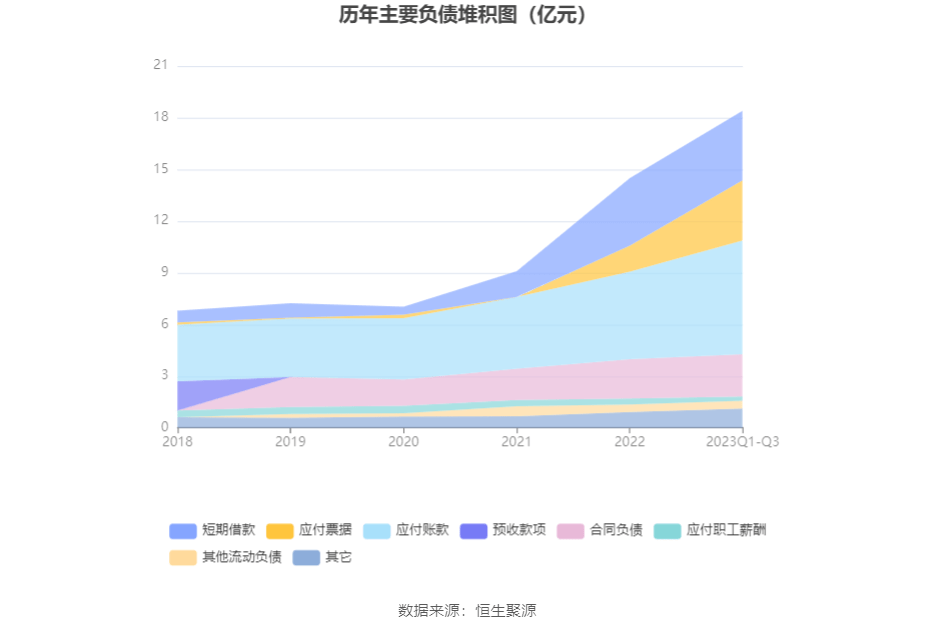 负债重大变化方面,截至2023年三季度末,公司应付票据较上年末增加130.26%,占公司总资产比重上升3.55个百分点;应付账款较上年末增加30.09%,占公司总资产比重上升1.63个百分点;应交税费较上年末增加53.21%,占公司总资产比重上升0.30个百分点;合同负债较上年末增加8.23%,占公司总资产比重下降0.27个百分点。