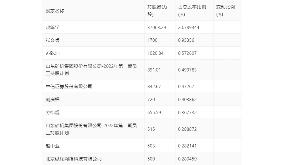三季报显示,2023年三季度末公司十大流通股东中,新进股东为山东矿机集团股份有限公司-2022年第二期员工持股计划、赵中亚、北京纵深网络科技有限公司,取代了上半年末的周利飞、阮寿国、UBS AG。在具体持股比例上,中信证券股份有限公司、刘庆福持股有所上升,张义贞、苏乾坤、山东矿机集团股份有限公司-2022年第一期员工持股计划持股有所下降。