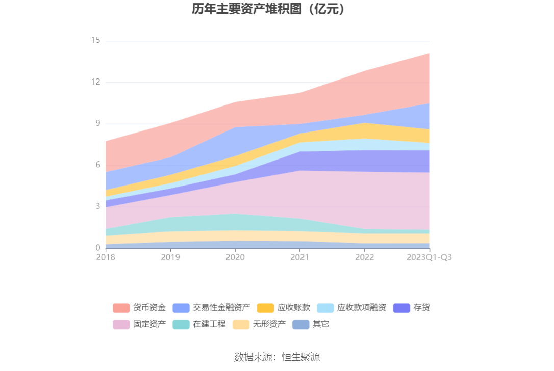 资产重大变化方面,截至2023年三季度末,公司交易性金融资产较上年末增加224.06%,占公司总资产比重上升8.78个百分点;固定资产较上年末减少0.16%,占公司总资产比重下降3.03个百分点;应收款项融资较上年末减少36.83%,占公司总资产比重下降2.76个百分点;应收账款较上年末减少12.91%,占公司总资产比重下降1.86个百分点。