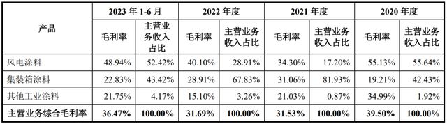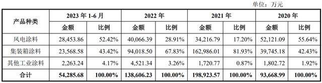 具体营收方面,主要营收来源于风电涂料和集装箱涂料,合计营收占比超过80%。