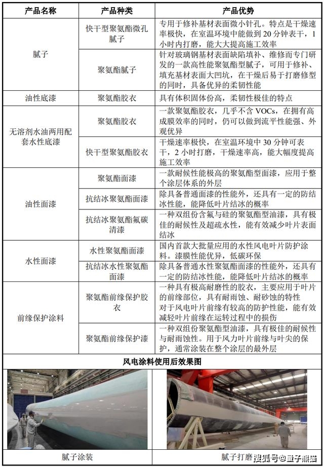 公司已成为国内风电叶片、集装箱 领域领先的涂料供应商。同时,公司的涂料产品也广泛应用于桥梁、钢结构等领域。