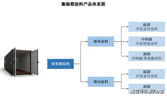 公司集装箱涂料产品系列涵盖集装箱的底漆、中间漆、箱内面漆与箱外面漆,可应用于干货箱、 冷藏箱与其他特种集装箱,具有优良的耐磨性、抗冲击性、抗老化性及防腐蚀性,以及耐盐雾、耐湿热、耐紫外老化等技术特点,起到集装箱防腐、美化的功能。
