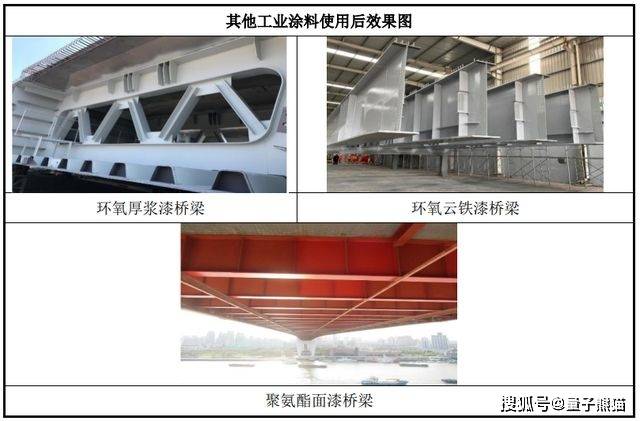 其他工业涂料则应用于大型桥梁、 钢结构构件的喷涂。