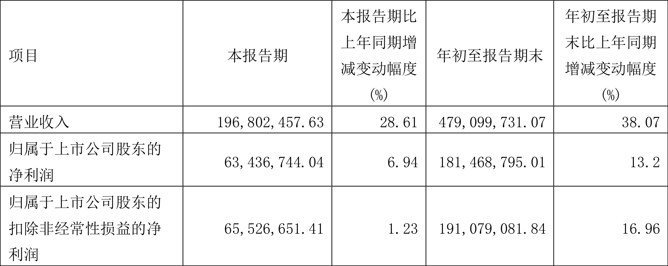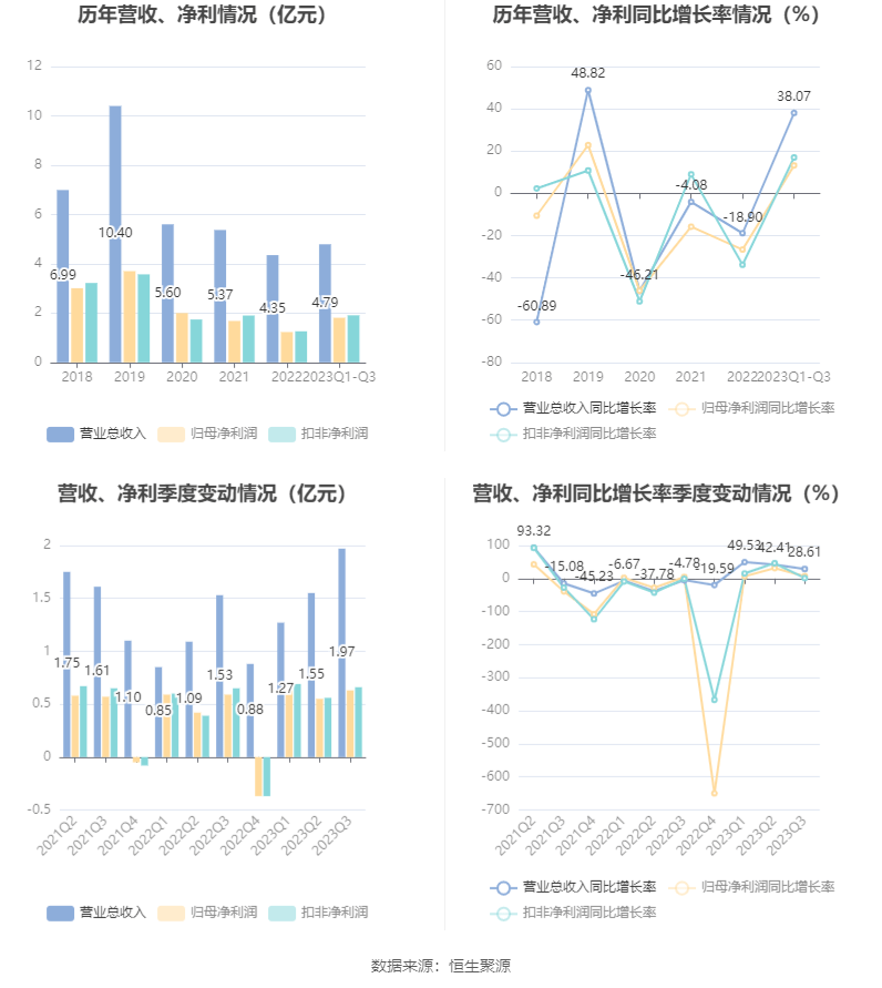 根据三季报,公司第三季度实现营业总收入1.97亿元,同比增长28.61%,环比增长26.73%;归母净利润6343.67万元,同比增长6.94%,环比增长14.84%;扣非净利润6552.67万元,同比增长1.23%,环比增长16.23%。