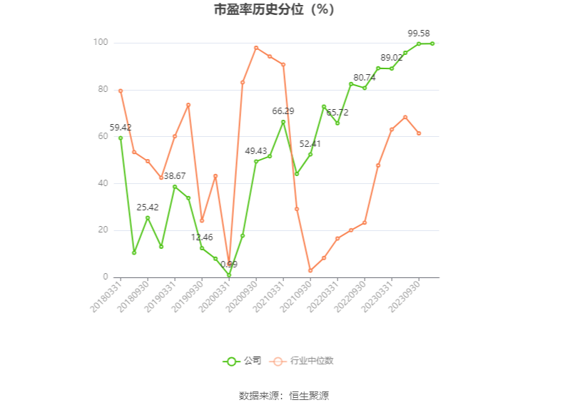 市盈率为负时,不显示当期分位数,会导致折线图中断。