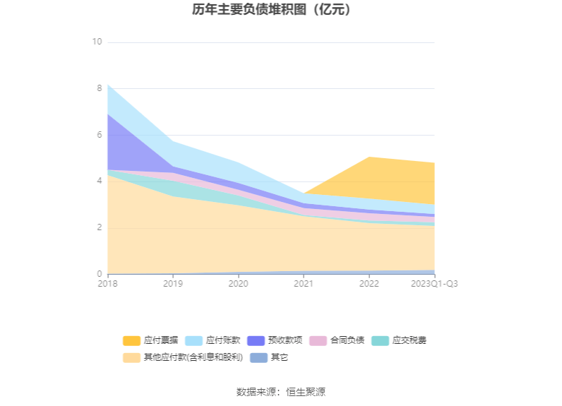 负债重大变化方面,截至2023年三季度末,公司其他应付款(含利息和股利)较上年末减少7.38%,占公司总资产比重下降0.35个百分点;合同负债较上年末减少26.49%,占公司总资产比重下降0.17个百分点;应付账款较上年末减少16.05%,占公司总资产比重下降0.15个百分点;应交税费较上年末增加39.44%,占公司总资产比重上升0.09个百分点。
