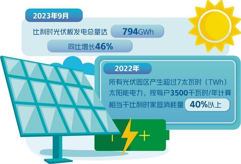 光伏发电的热潮顺理成章地创造了全新的发电纪录。比利时高压电网运营商发言人让·法西奥(Jean Fassiaux)表示,“今年6月,光伏发电总量就曾达到1170GWh,这个高峰绝非巧合。目前比利时全国境内光伏园区的数量每年都在增加,这大大推动了光伏发电量的上升”。根据比利时高压电网运营商的数据,2022年,所有光伏园区产生了超过7太瓦时(TWh)的太阳能电力,按每户3500千瓦时/年计算,相当于比利时家庭电力消耗量40%以上。