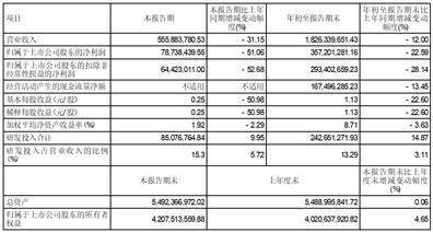 一、 主要财务数据