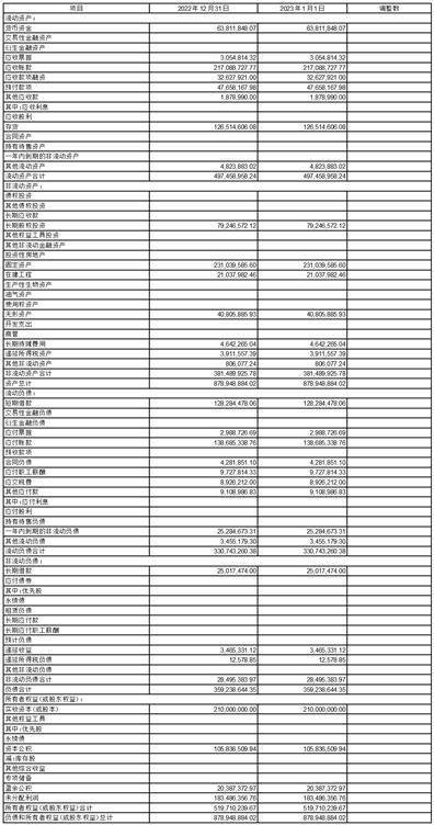 2023年起首次执行新会计准则或准则解释等涉及调整首次执行当年年初的财务报表