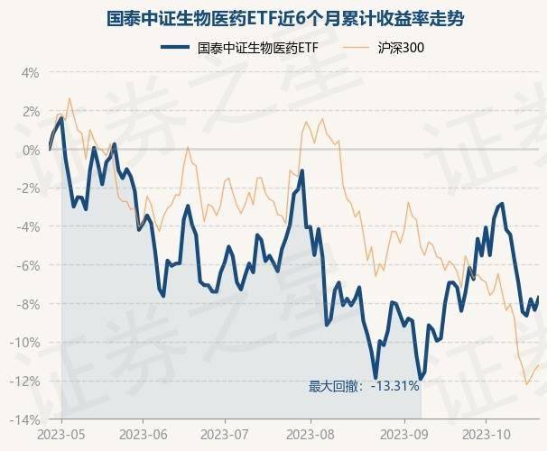 证券之星消息,10月26日,国泰中证生物医药ETF最新单位净值为1.0899元,累计净值为1.0899元,较前一交易日上涨0.7%。历史数据显示该基金近1个月下跌1.04%,近3个月下跌5.54%,近6个月下跌7.75%,近1年下跌12.01%。该基金近6个月的累计收益率走势如下图: