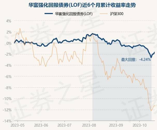 证券之星消息,10月26日,华富强化回报债券(LOF)最新单位净值为1.661元,累计净值为2.112元,较前一交易日上涨0.3%。历史数据显示该基金近1个月下跌1.13%,近3个月下跌2.58%,近6个月下跌1.72%,近1年下跌2.75%。该基金近6个月的累计收益率走势如下图: