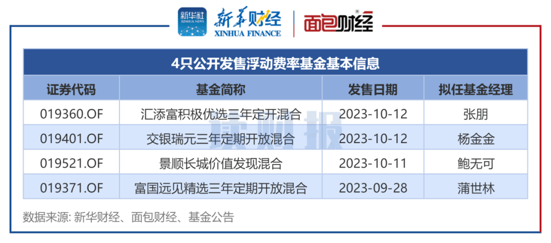 根据不完全统计,进入9月以来,陆续已有至少4只浮动费率基金公开发售,包括汇添富积极优选三年定开混合、交银瑞元三年定期开放混合、景顺长城价值发现混合、富国远见精选三年定期开放混合。