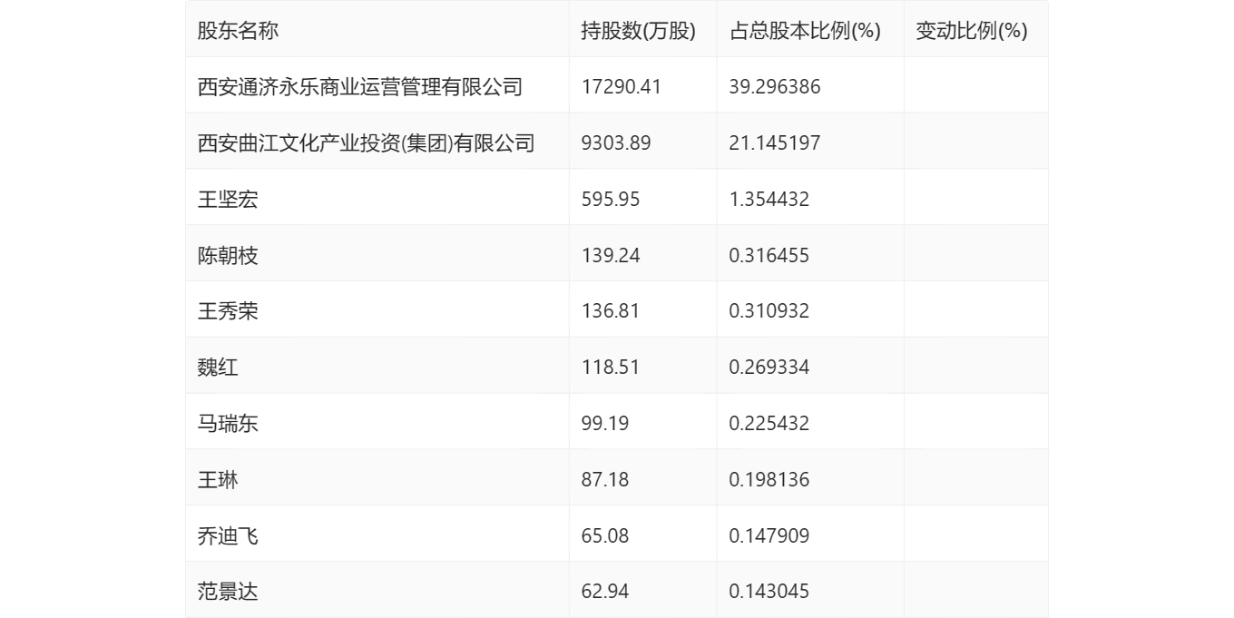 三季报显示,2023年三季度末公司十大流通股东中,新进股东为西安通济永乐商业运营管理有限公司、魏红、马瑞东、乔迪飞、范景达,取代了上半年末的深圳市浩明投资控股集团有限公司、深圳市人人乐咨询服务有限公司、张政、何金明、中信证券股份有限公司。在具体持股比例上,王坚宏持股有所上升,王琳持股有所下降。
