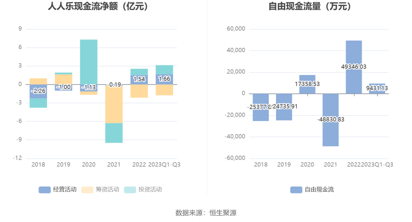 2023年前三季度,公司经营活动现金流净额为1.66亿元,同比增长120.88%,主要系支付的经营性款项减少所致;筹资活动现金流净额-1.76亿元,同比减少3872.57万元;投资活动现金流净额1.48亿元,上年同期为1.03亿元,主要系上年购买的理财产品到期赎回所致。