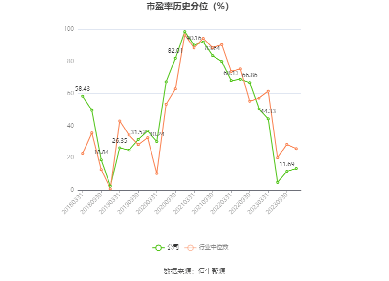 市盈率为负时,不显示当期分位数,会导致折线图中断。