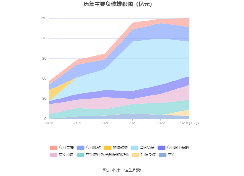 负债重大变化方面,截至2023年三季度末,公司合同负债较上年末减少25.13%,占公司总资产比重下降6.57个百分点;租赁负债较上年末增加11779.09%,占公司总资产比重上升2.05个百分点;应交税费较上年末增加61.55%,占公司总资产比重上升1.51个百分点;应付票据较上年末增加94.61%,占公司总资产比重上升1.26个百分点。