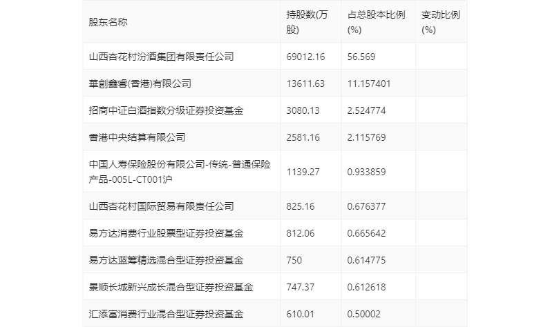 资料显示,公司经营范围主要是汾酒、竹叶青酒、杏花村系列酒的生产、销售。
