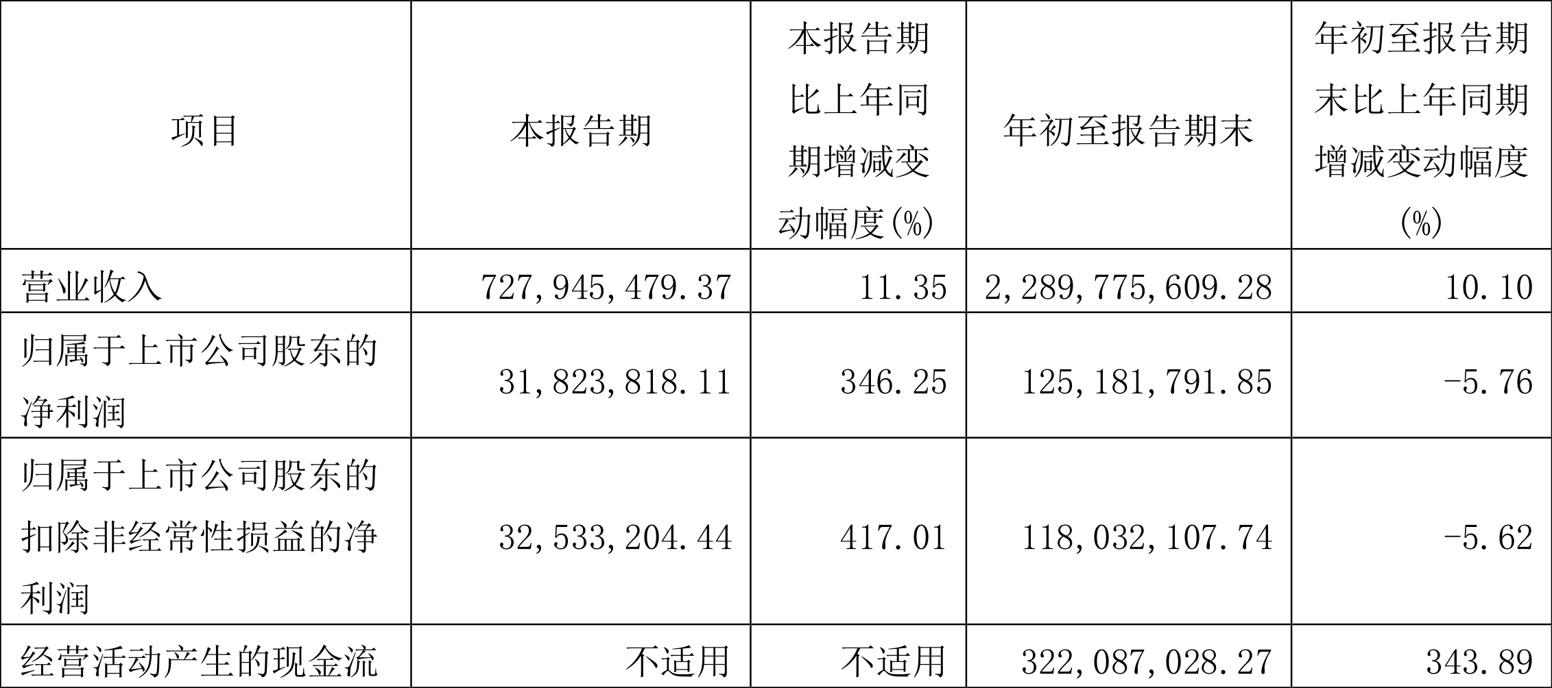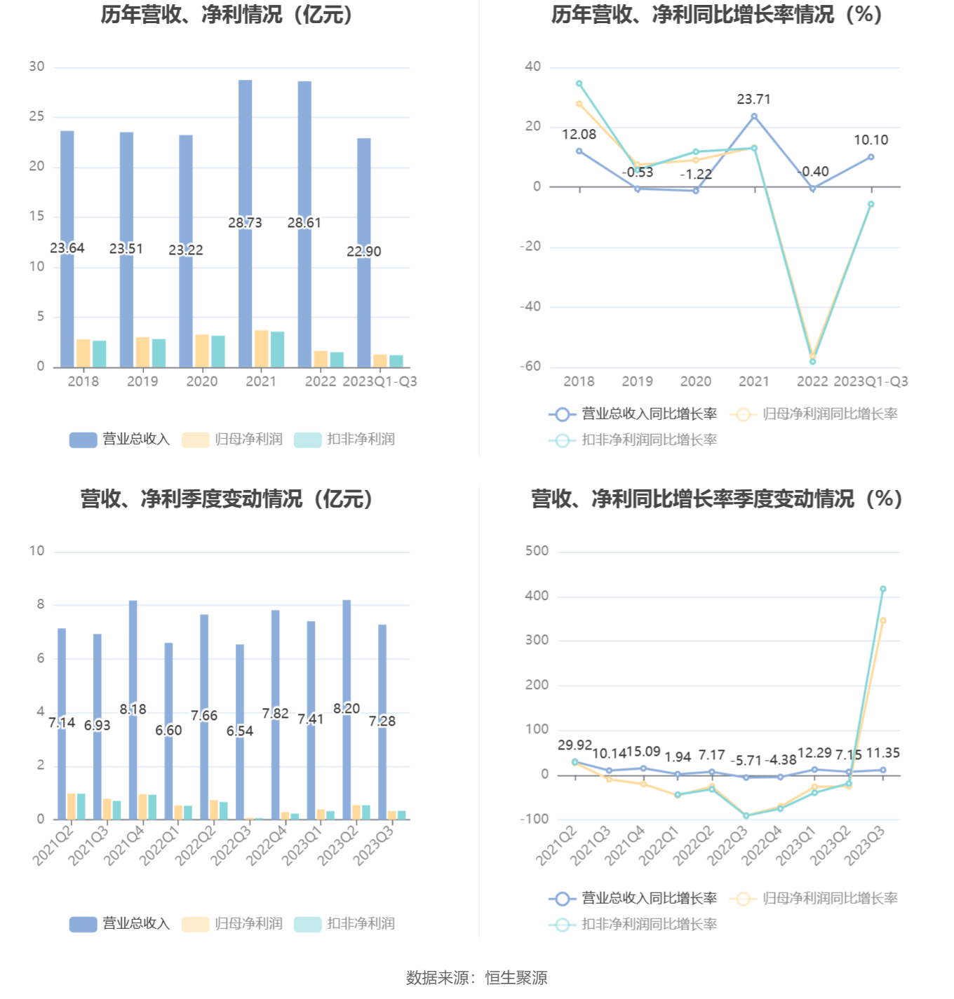 根据三季报,公司第三季度实现营业总收入7.28亿元,同比增长11.35%,环比下降11.27%;归母净利润3182.38万元,同比增长346.25%,环比下降41.51%;扣非净利润3253.32万元,同比增长417.01%,环比下降39.55%。