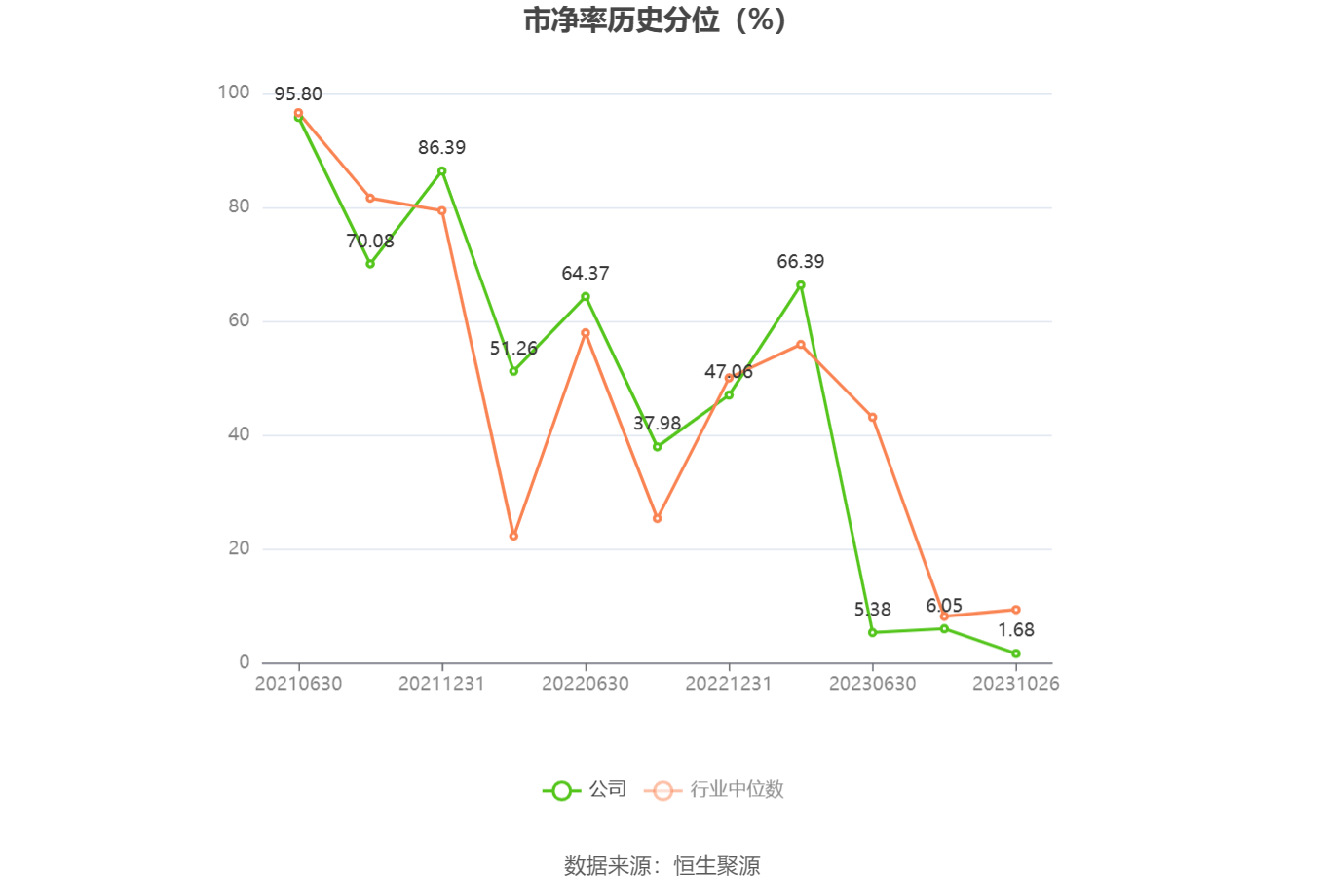 市盈率为负时,不显示当期分位数,会导致折线图中断。