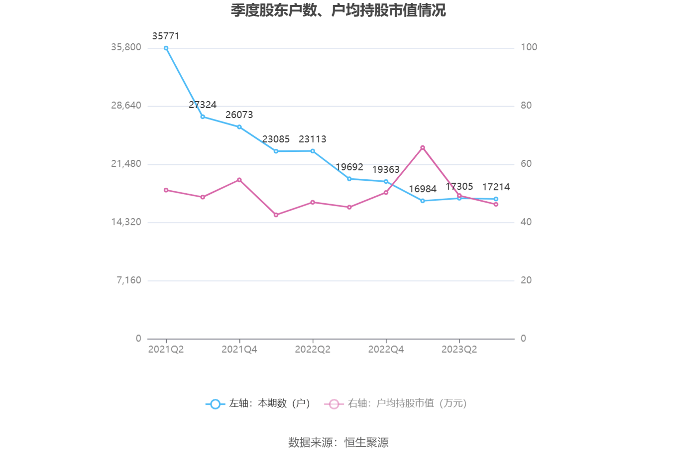 筹码集中度方面,截至2023年三季度末,公司股东总户数为1.72万户,较上半年末下降了91户,降幅0.53%;户均持股市值由上半年末的49.24万元下降至46.24万元,降幅为6.09%。