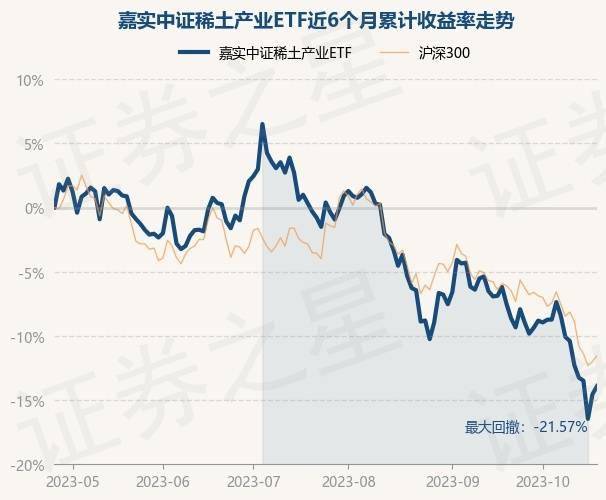 证券之星消息,10月25日,嘉实中证稀土产业ETF最新单位净值为0.943元,累计净值为0.943元,较前一交易日上涨0.74%。历史数据显示该基金近1个月下跌5.47%,近3个月下跌14.28%,近6个月下跌13.97%,近1年下跌19.13%。该基金近6个月的累计收益率走势如下图: