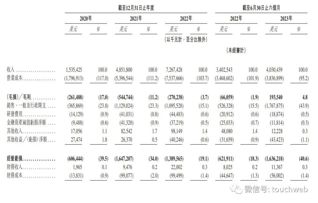 招股书显示,极兔2020年、2021年、2022年营收分别为15.35亿美元、48.52亿美元、72.67亿美元,期内利润分别为-6.64亿美元、-61.92亿美元、15.73亿美元;经调整亏损分别为4.76亿美元、9.1亿美元、8亿美元。