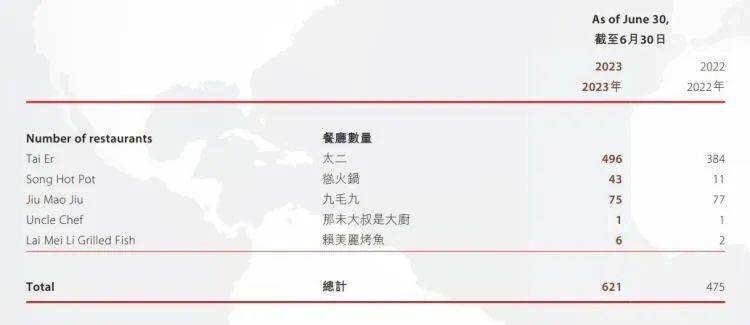 截至2023年6月30日,太二酸菜鱼门店总数量达496家。