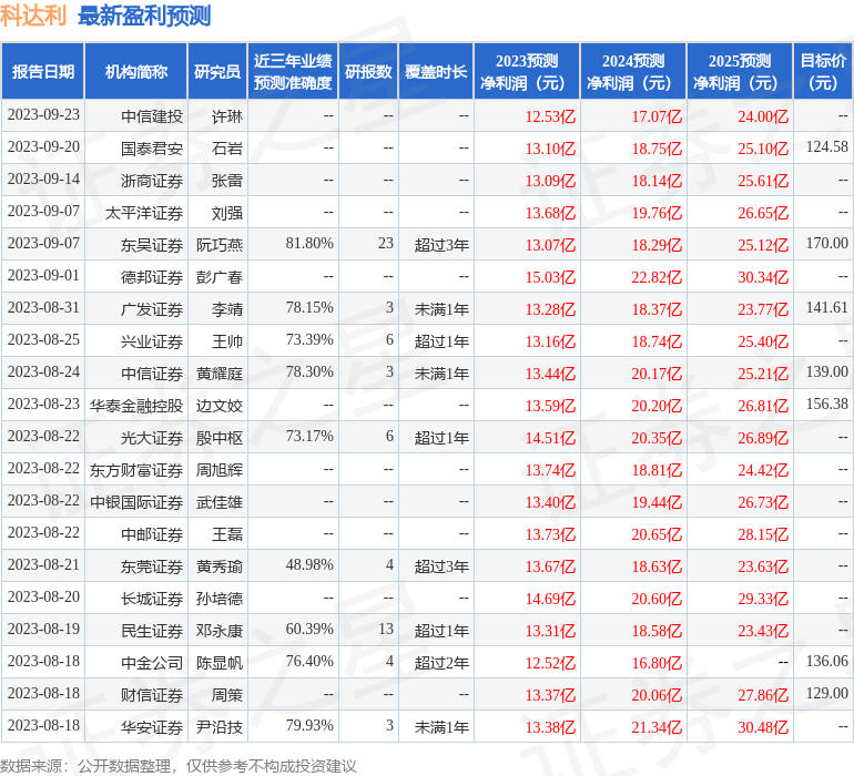 以下是详细的盈利预测信息: