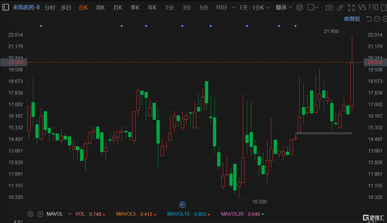 来凯医药大涨23%,LAE001+afuresertib治疗前列腺癌I/II期临床研究数据令人鼓舞。在近日举行的2023年欧洲肿瘤内科学会(ESMO)年会前列腺癌专场上,来凯医药公布了公司潜在创新药物——LAE001联合afuresertib(LAE002)加泼尼松的治疗前列腺癌I/II期临床研究数据。该联合疗法在治疗mCRPC患者中展现出积极的抗肿瘤活性和安全性。在40名曾接受1-3线标准治疗后进展(包括至少一线二代抗雄激素药物)的mCRPC患者中,LAE001+afuresertib联合疗法的中位rPFS达7.9个月,比目前文献报道使用标准治疗的mCRPC患者中位rPFS的2-4月有了较大的改善,临床数据令人鼓舞。研究者认为,该方案对耐药性mCRPC具有潜在的临床益处,支持进入III期关键临床研究。