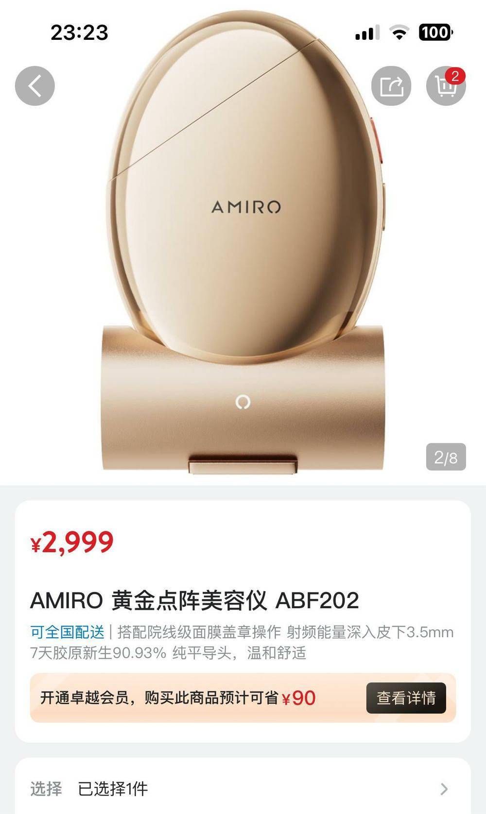 该产品在京东、天猫等官方店铺预估到手价为4599元,与贾乃亮、向太等达人抖音直播间预估到手价相同。然而在线下的山姆超市里,AMIRO觅光第一代胶原炮日常售价仅为2999元。