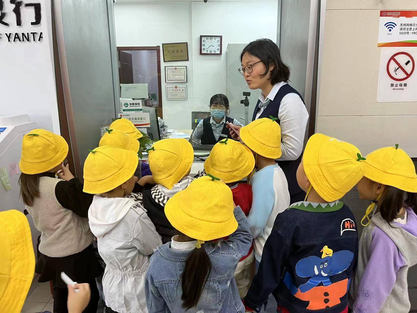 活动当天,小朋友们在老师的带领下,怀着兴奋的心情,排着整齐的队伍来到烟台农商银行观海路支行。活动开始,烟台农商银行工作人员带领着孩子们参观了银行大厅,详细讲解了银行的咨询台、取号机、ATM机、社保卡制卡机、智慧柜员机、现金服务区等各个功能区域,使孩子们对银行的工作流程有了初步的了解。