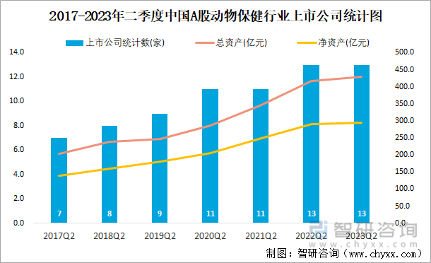 2017-2023年二季度中国A股动物保健行业上市公司统计图