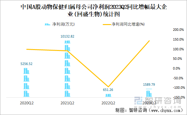中国A股动物保健归属母公司净利润2023Q2同比增幅最大企业(回盛生物)统计图